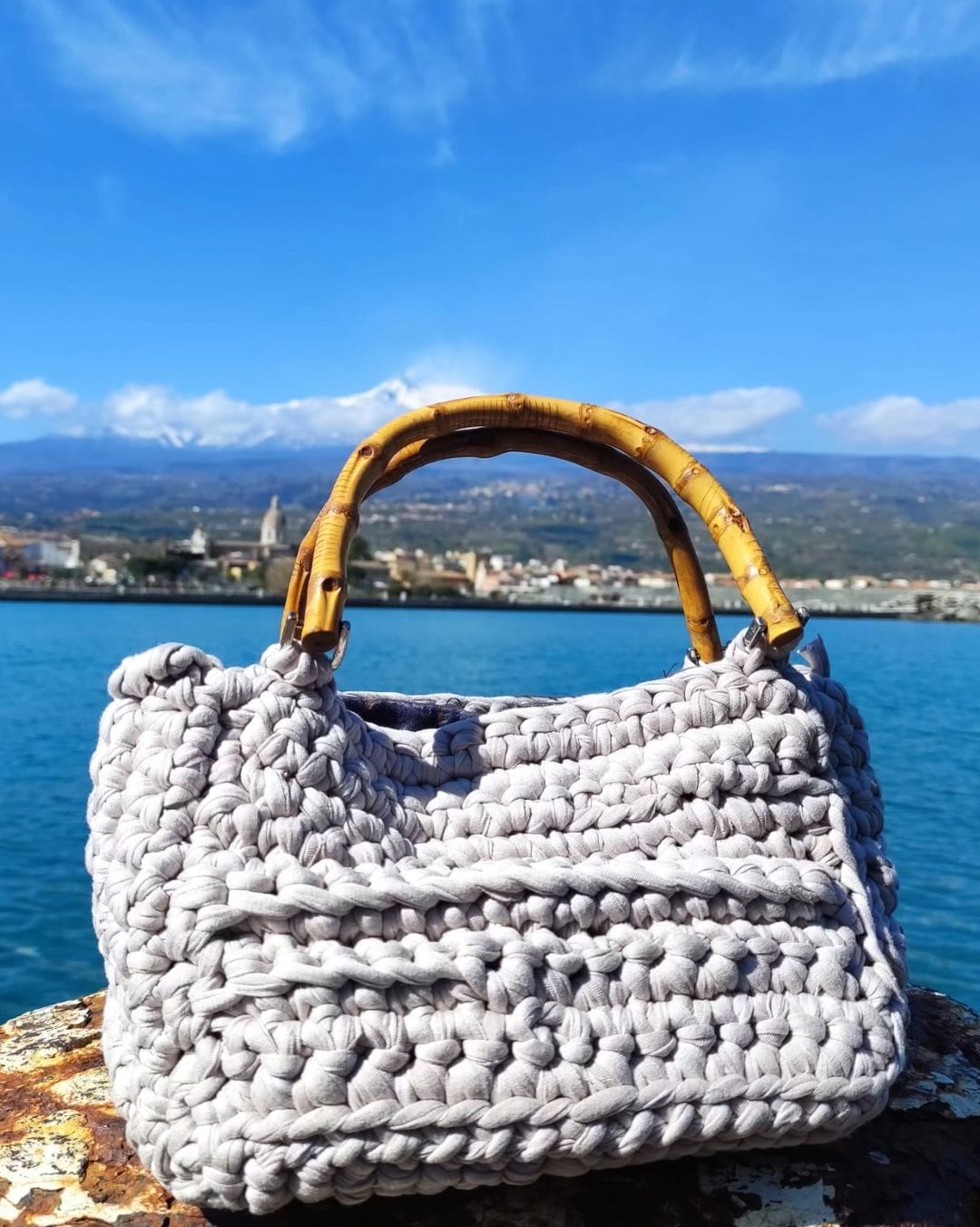Elegante e raffinata, la nostra borsa fatta a mano in cordino di cotone grigio perla è il perfetto connubio tra stile e funzionalità. Realizzata con cura artigianale, questa borsa è un accessorio versatile che aggiungerà un tocco di classe a qualsiasi outfit.