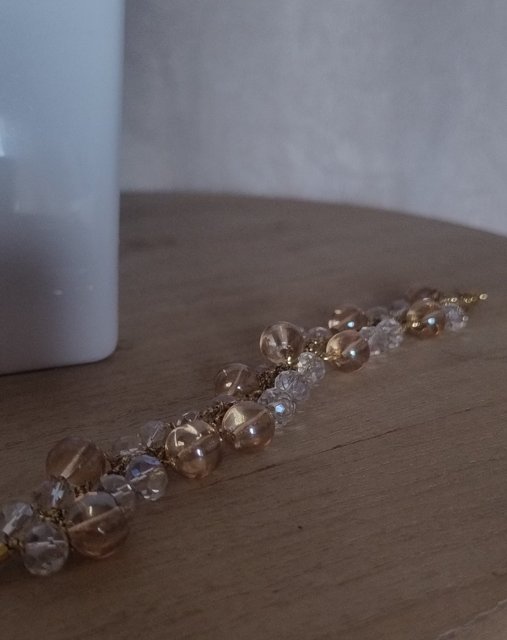 perline di vetro o altre pietre semi-preziose, disponibili in vari colori e taglie per aggiungere brillantezza e colore al bracciale.