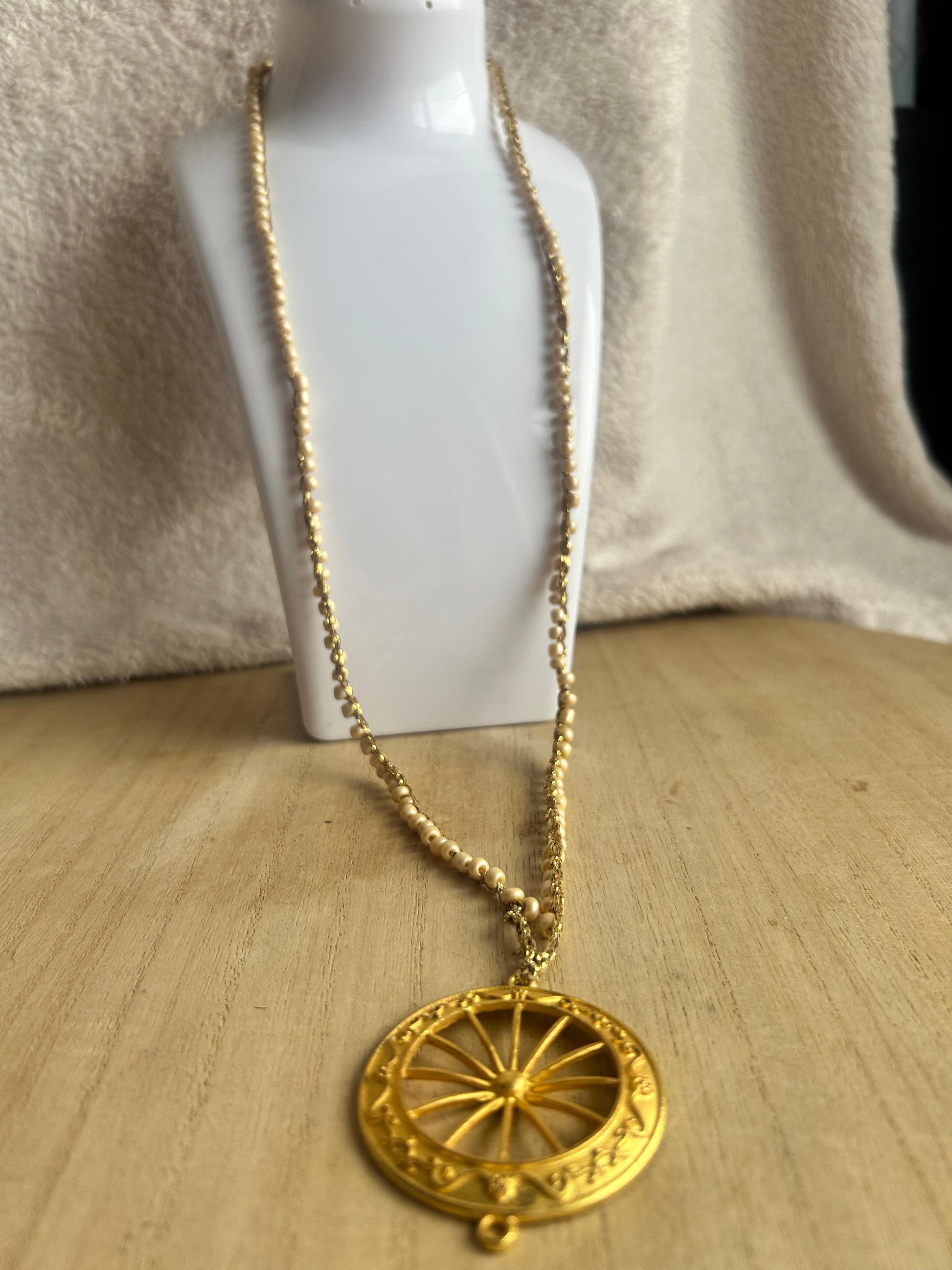 Collana "Ruota del Carretto Siciliano" in Filato Uncinetto con Pendente Color Oro